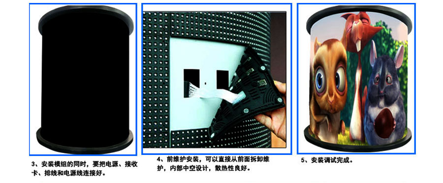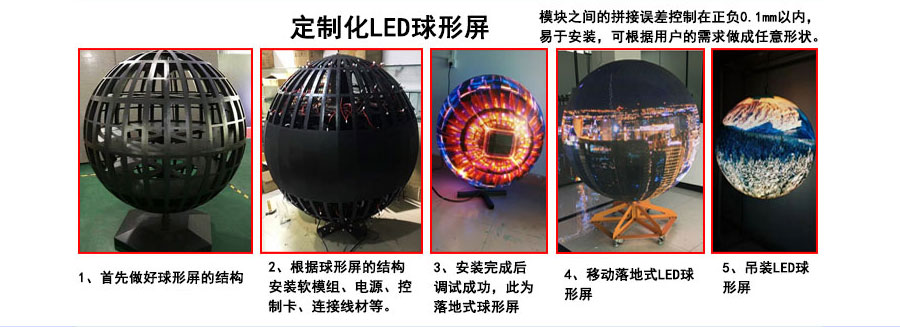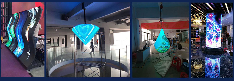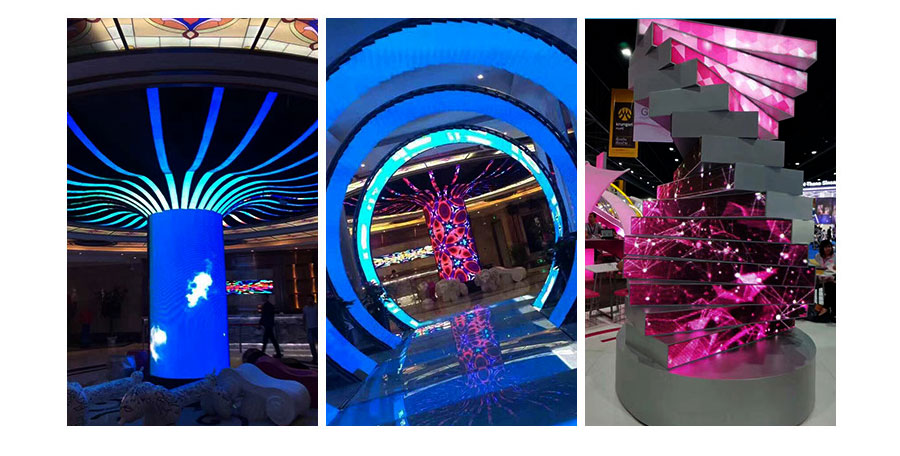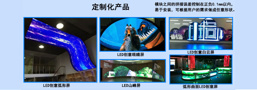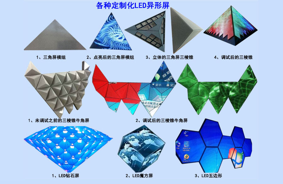 可拼接成各种菱形、魔方屏、三角屏、圆柱屏、圆形屏、球形屏、扇形屏、环形屏和DJ屏等多种造型;